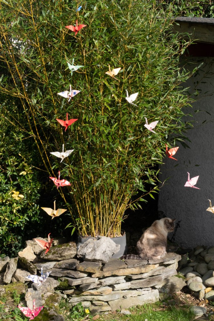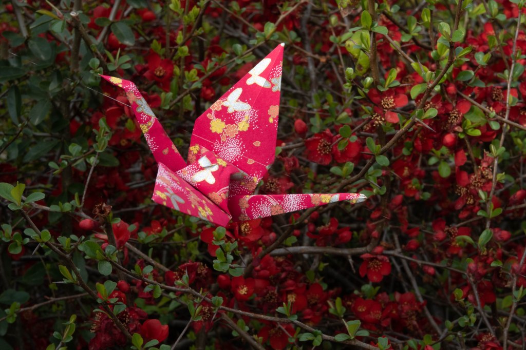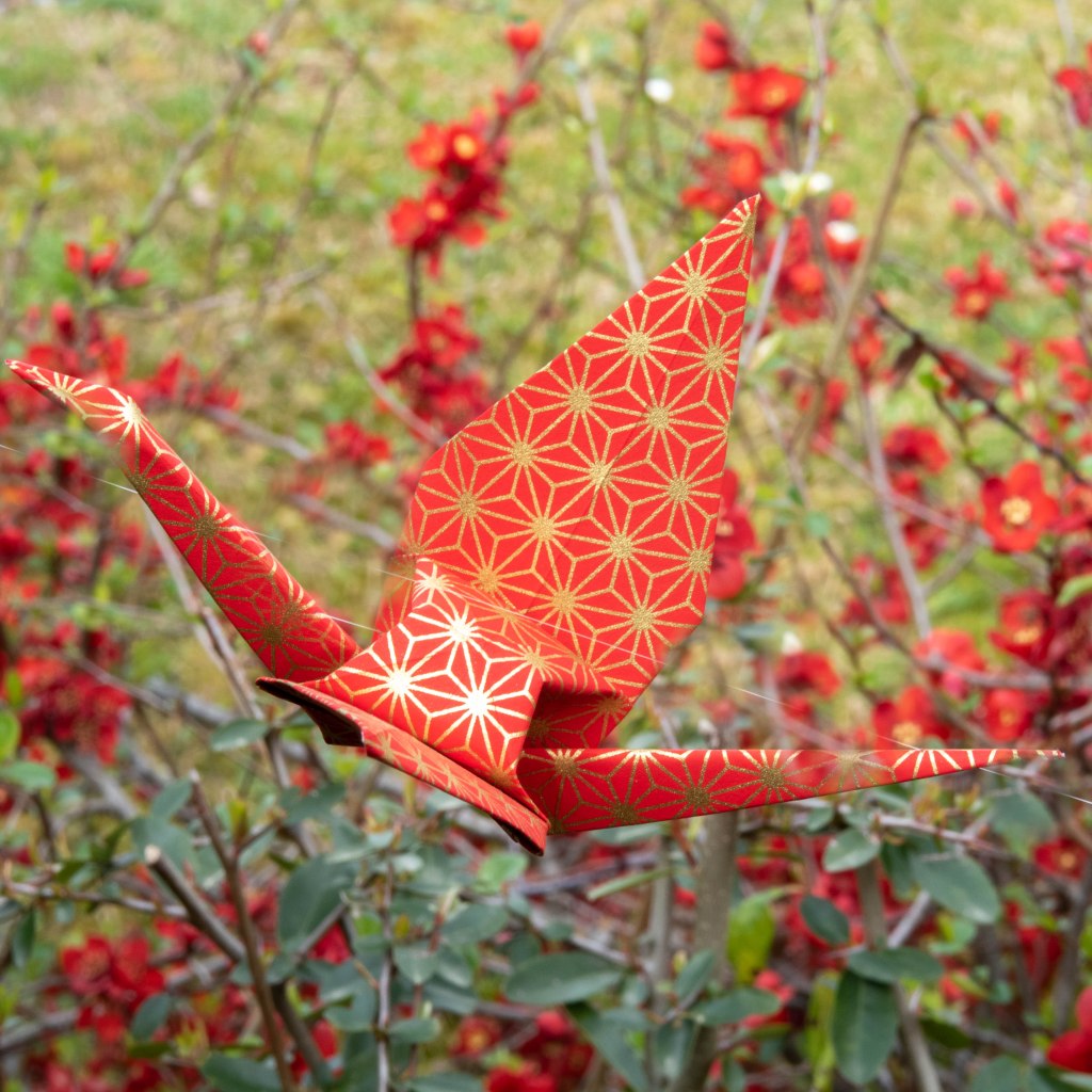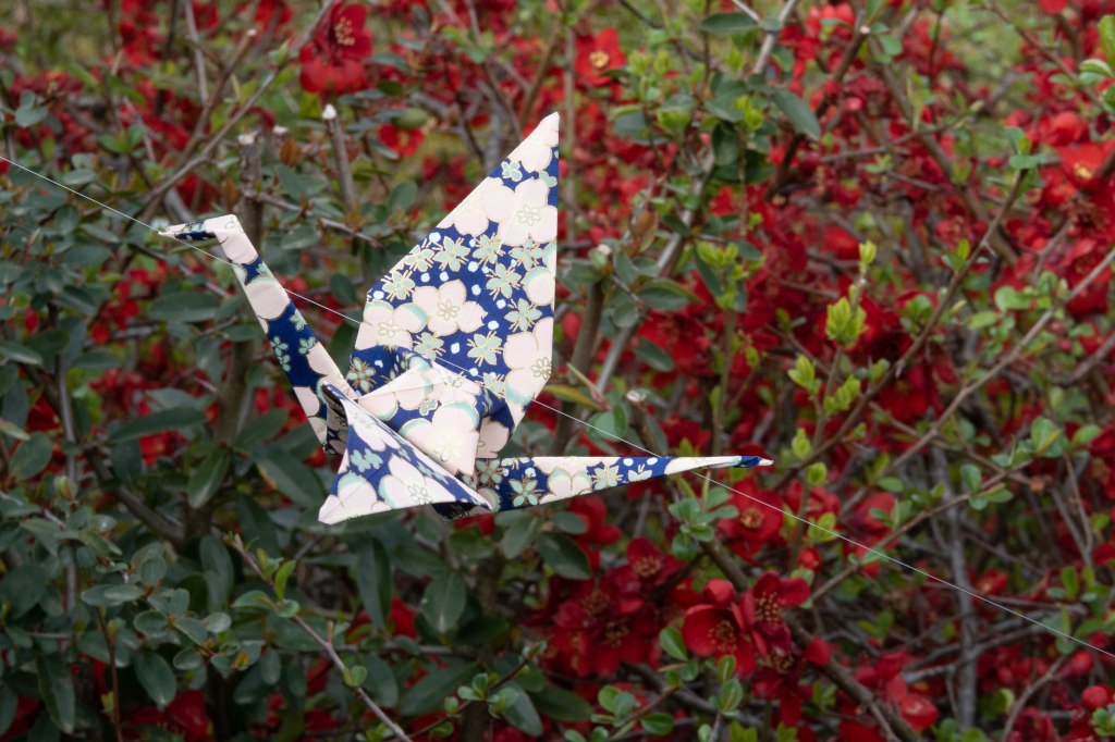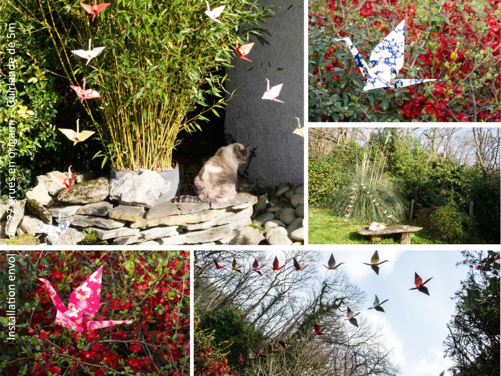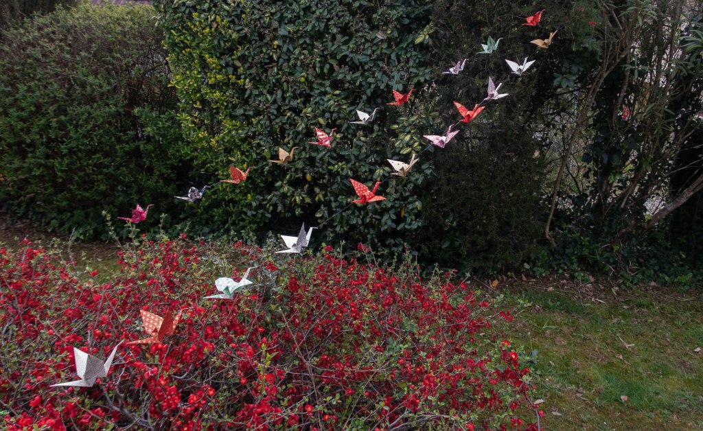 Grues origami, installations – Guirlande de 22 grues